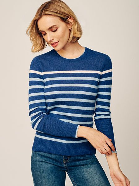 Cashmere goes beyond 9-to-5—it’s perfect for casual weekends, too. Pair our striped Poet cashmere sweater with denim to create a relaxed yet refined look. Add a tote bag and loafers to tie it all together.